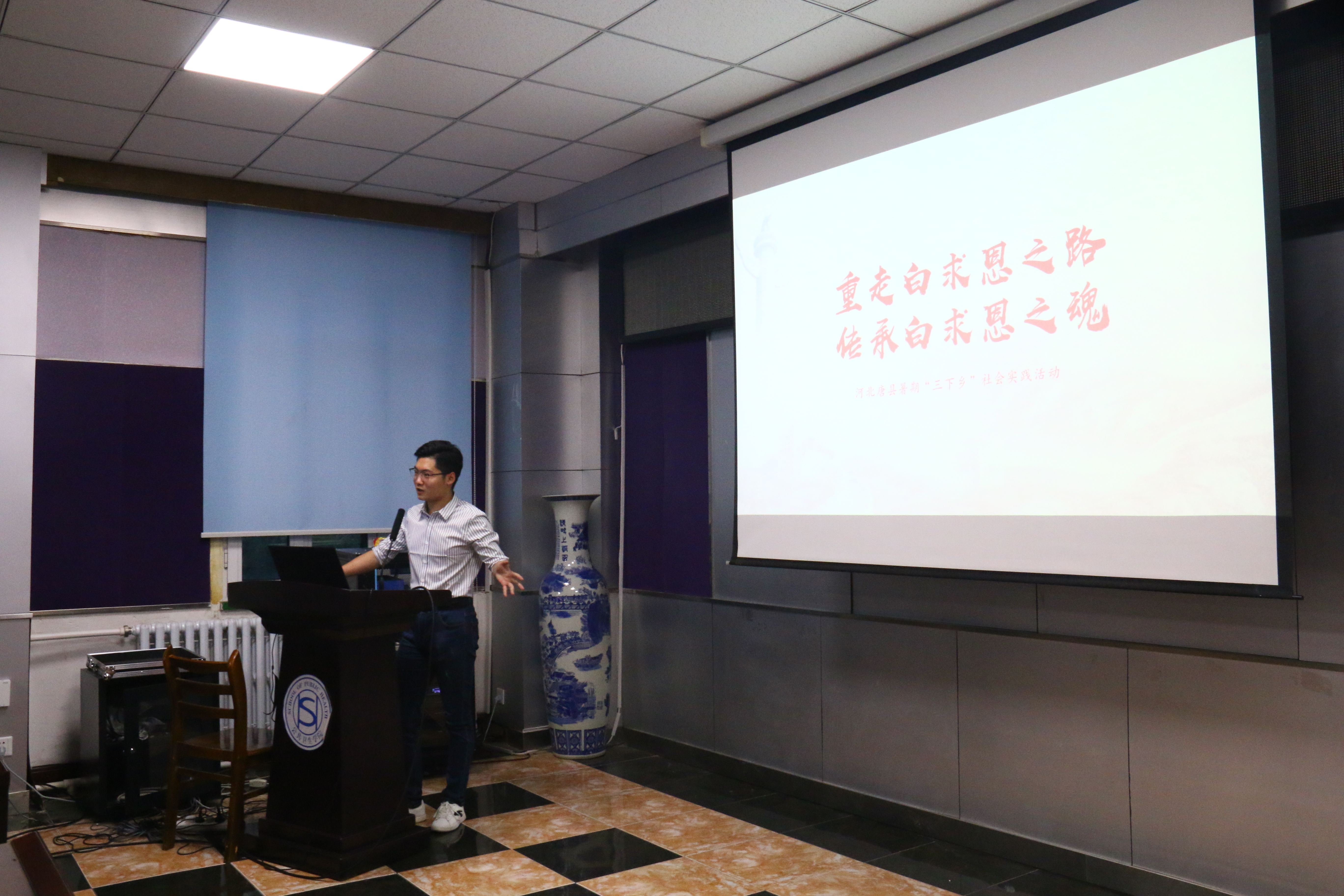 在本次社会实践分享会上,吕博文、何双双、刘家硕、刘畅、卞骏业同学分别为大家讲述了他们在唐县、通榆、通辽进行社会实践的经历。虽然条件艰苦,但是所有的同学都克服了这些困难,积极参加各项活动:为孩子们上课、与孩子们玩耍交流、挨家挨户宣传义诊、帮助老师给村民义诊等等。志愿者感慨道:“一路上憧憬与期待,九天时间的陪伴与欢乐,归途时不舍与依恋,我终于知道了为什么去过葛公村的人,总想再去一次,因为那里有值得留存一生的记忆和不能忘记的欢声笑语。” 实践过程中收获的经验和友谊将是值得一生铭记的宝贵财富。除此之外,他们还提醒同学们在前期准备阶段中需要注意的事项,比如做好防蚊防虫防酷暑等的准备。