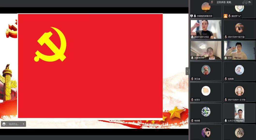 接下来,党支部采取线上线下同步的方式,在各支部支委的带领下,新发展的预备党员面向党旗,高举右拳,进行了入党宣誓。宣誓仪式后,支部党员代表进行发言,他们表示欢迎各位新发展预备党员加入党支部这个大家庭,希望在今后的学习生活中,大家互帮互助,共同进步,共同推进支部建设,切实发挥出党支部的战斗堡垒作用,更好地为老师和同学们服务。