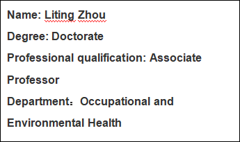 • 2019.9-present  Associate Professor, School of Public Health, Jilin University