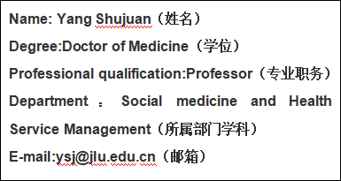• October 1997 to present: a teacher of School of public health, Jilin University